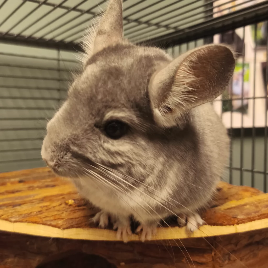 Tao le petit chinchilla est arrivé au refuge après un passage à la fourrière. De nature plutôt timide comme la plupart des chinchilla il a beaucoup d’énergie à revendre ! Il est gourmand et il adore se rouler dans la terre à bain pour entretenir son pelage.